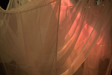 Dans un espace baigné d’ombre et de lumière, des bâtons transparents suspendus au plafond oscillent au rythme des interactions humaines. Chaque contact déclenche une réponse subtile : un frisson lumineux sur les rideaux, une résonance sonore qui se propage dans l’air. Ici, la technologie et le mouvement fusionnent dans un dialogue où chaque spectateur devient un co-créateur de l’expérience.